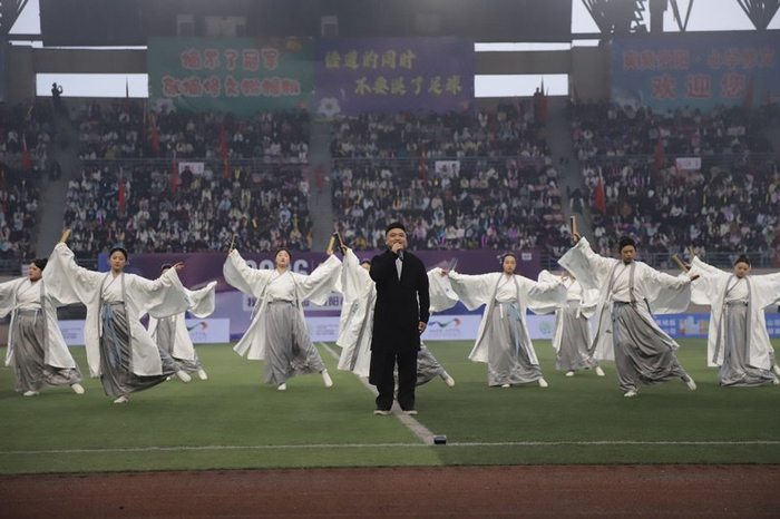 2026山花杯我要上“城超”贵阳市足球选拔赛开幕式在修文县体育中心举行。文俊入摄开幕式在气势磅礴的鼓舞表演《起势鼓》中拉开帷幕,激昂的鼓点、铿锵的舞步传递出奋进向上的力量;城超主题曲《逐梦贵阳》旋律动人,歌曲《我心光明》展现心学修文的文化底蕴;武术表演《知行合一,舞动绿茵》将中华武术、阳明文化与足球精神巧妙融合,一招一式间尽显传统文化与现代体育交相辉映的独特魅力。